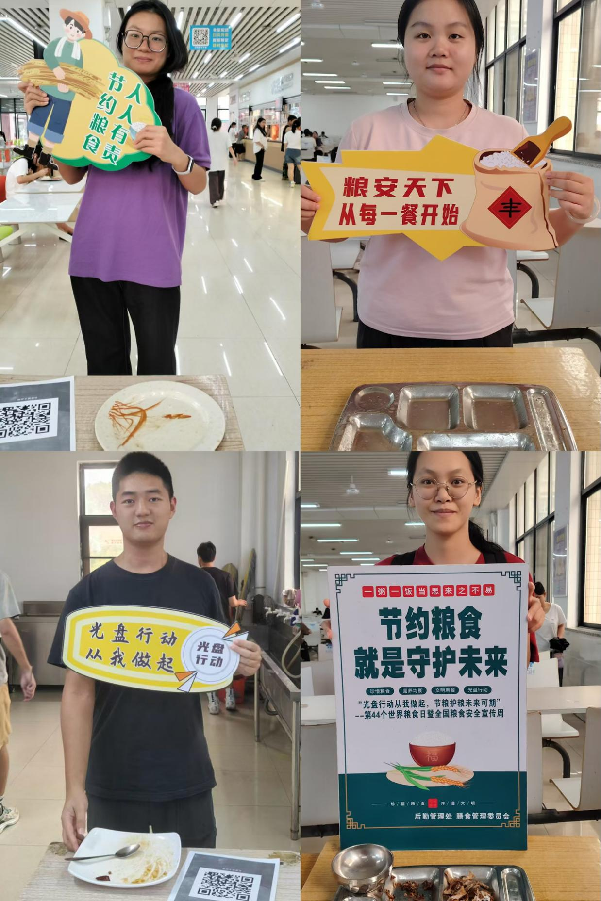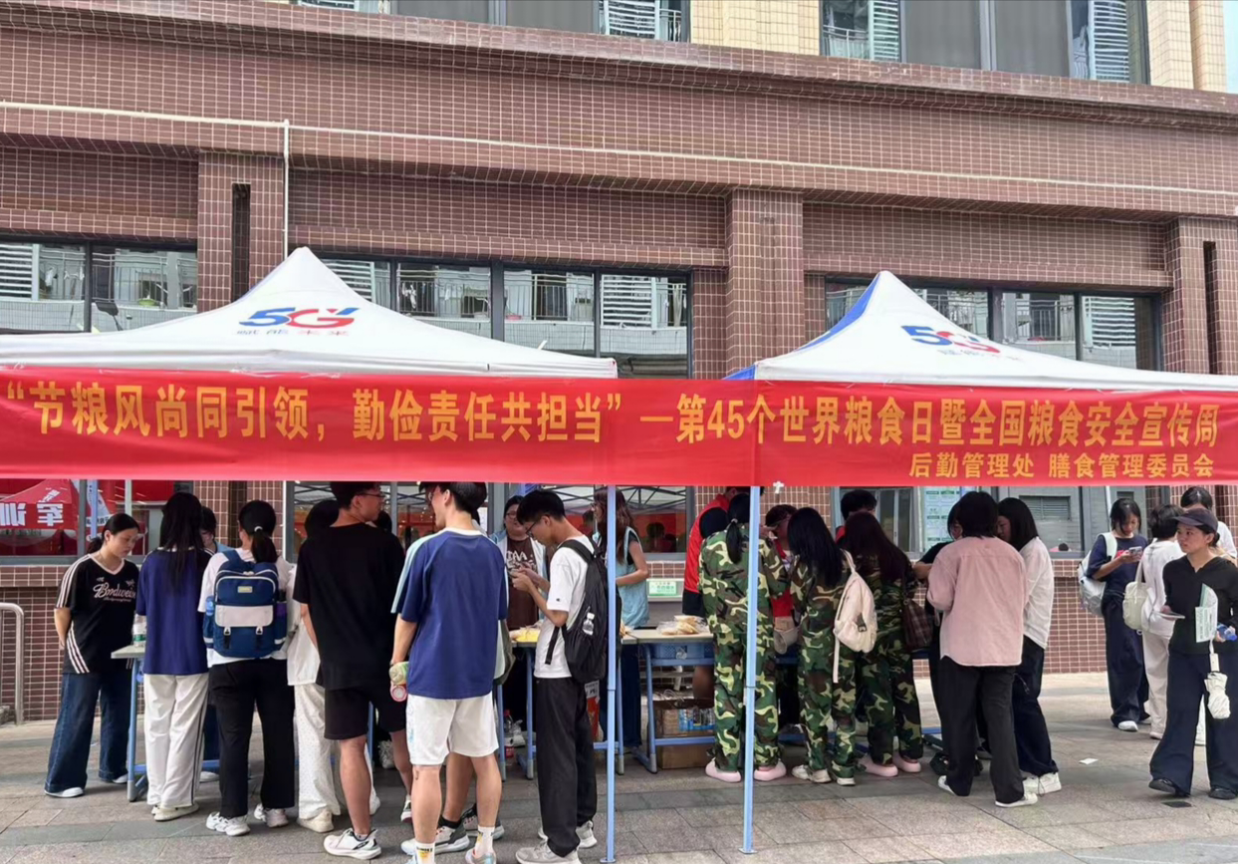 为深入贯彻国家粮食安全战略,切实增强师生节约意识,10月16日,后勤管理处膳食管理委员会(以下简称膳委会)在A区食堂组织开展了“节粮风尚同引领,勤俭责任共担当”主题宣传活动。本次活动创新采用宣传教育与互动体验相结合的方式,引导师生从日常餐饮做起,以实际行动践行粮食安全理念。